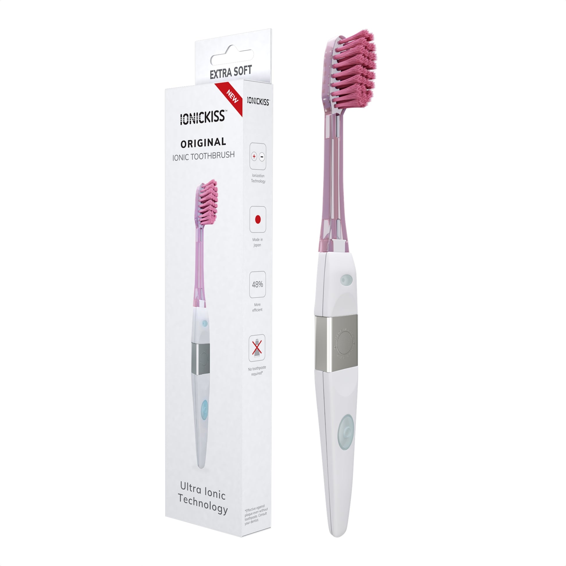 Cepillo dental ionizante Ionickiss Original con cabezal reemplazable a tu elección. El cepillo de dientes manual más avanzado de la historia, clínicamente probado para eliminar un 48% más de placa que los cepillos de dientes normales.
